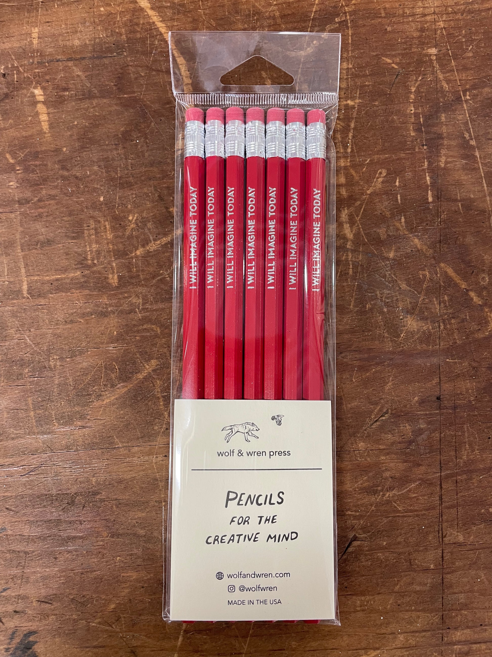 Pencils for the Creative Mind by Wolf & Wren Press. Set of seven colorful #2 pencils with the affirmation 'I Will Imagine Today'.